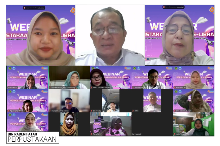 Palembang, 18 November 2025 – UPT. Perpustakaan UIN Raden Fatah Palembang kembali menghadirkan program penguatan literasi melalui kegiatan Webinar Perpustakaan Digital E-Library yang berlangsung pada Selasa (18/11) secara virtual melalui Zoom Meeting. Kegiatan ini mengusung tema “Menguatkan Literasi, Membangun Prestasi, dan Inspirasi di Era Digital”, sebagai bentuk komitmen kampus dalam mendukung transformasi digital di lingkungan perguruan tinggi. Webinar dibuka secara resmi oleh Kepala Biro Administrasi Umum, Perencanaan, dan Keuangan (AUPK) UIN Raden Fatah Palembang, Dr. H. Zahdi, M.H.I., yang hadir melalui Zoom mewakili Rektor UIN Raden Fatah Palembang, Prof. Dr. Muhammad Adil, M.A.. Rektor belum berkesempatan hadir secara langsung karena pada waktu yang sama memenuhi undangan kegiatan lain.